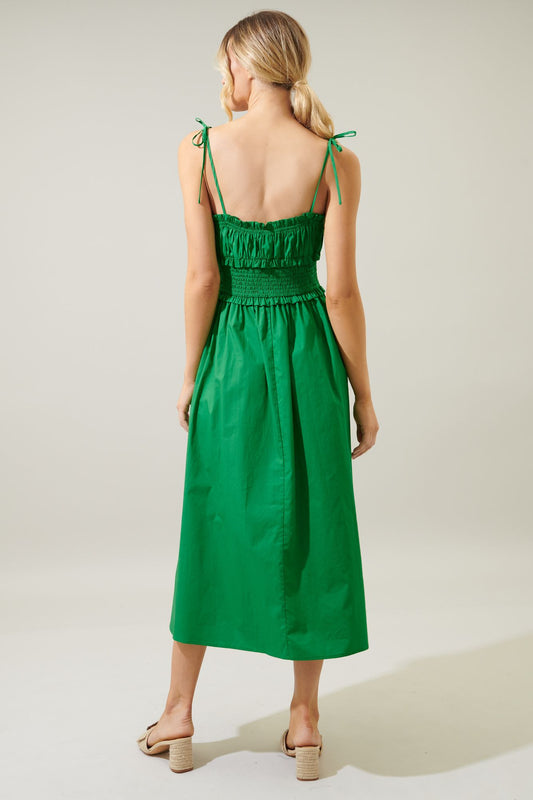 Orion Smocked Waist Tie Strap Poplin Midi Dress