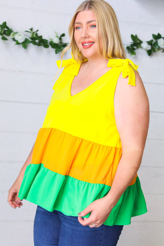 HAPTICS- Yellow & Tangerine Tiered Shoulder Tie Bow Crepe