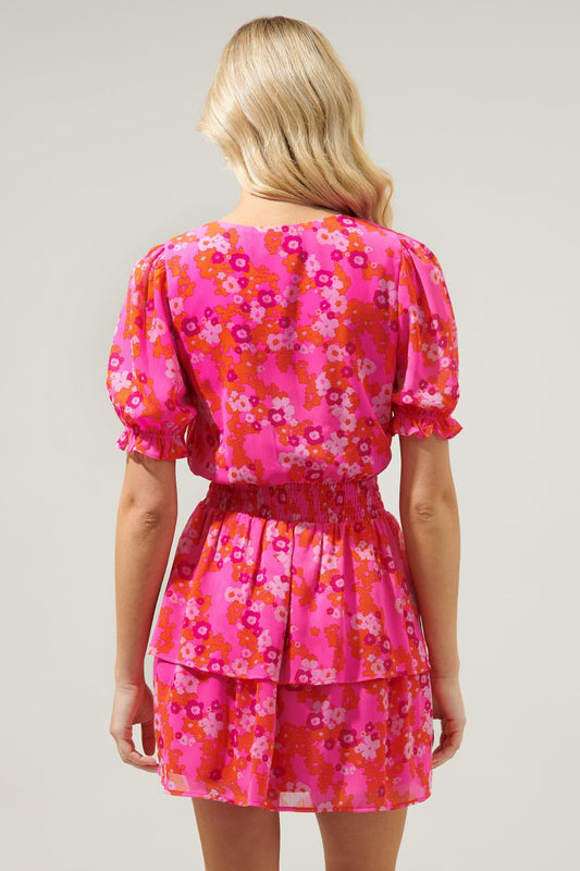 Poppy Punch Amina Surplice Ruffle Mini Dress